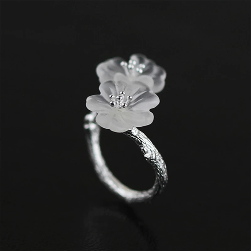 Lotus Fun Real 925 Sterling Silver Ring Natural Crystal Handmade Designer Fine Jewelry Flower in th