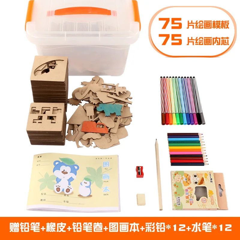 New Style 75 PCs Painting Kit Children DIY Picture Design Fun Graffiti Coloring Educational Early C