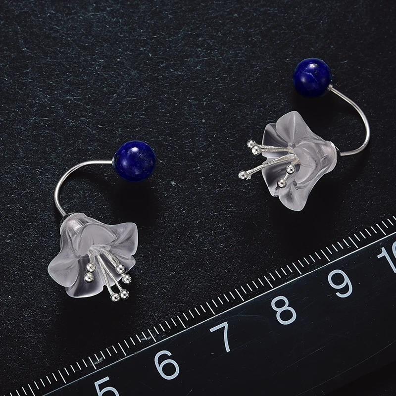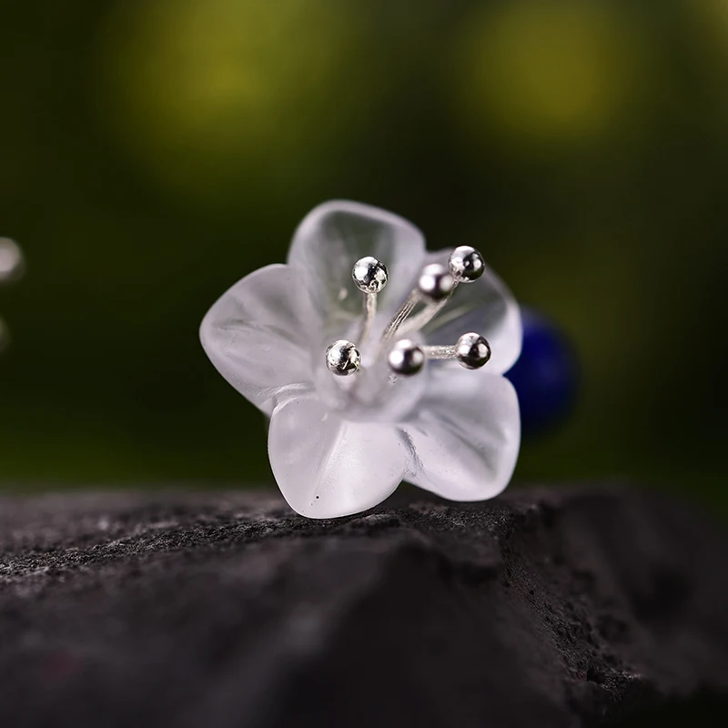 Lotus Fun Real 925 Sterling Silver Earrings Natural Crystal Handmade Fine Jewelry Fresh Flower Drop