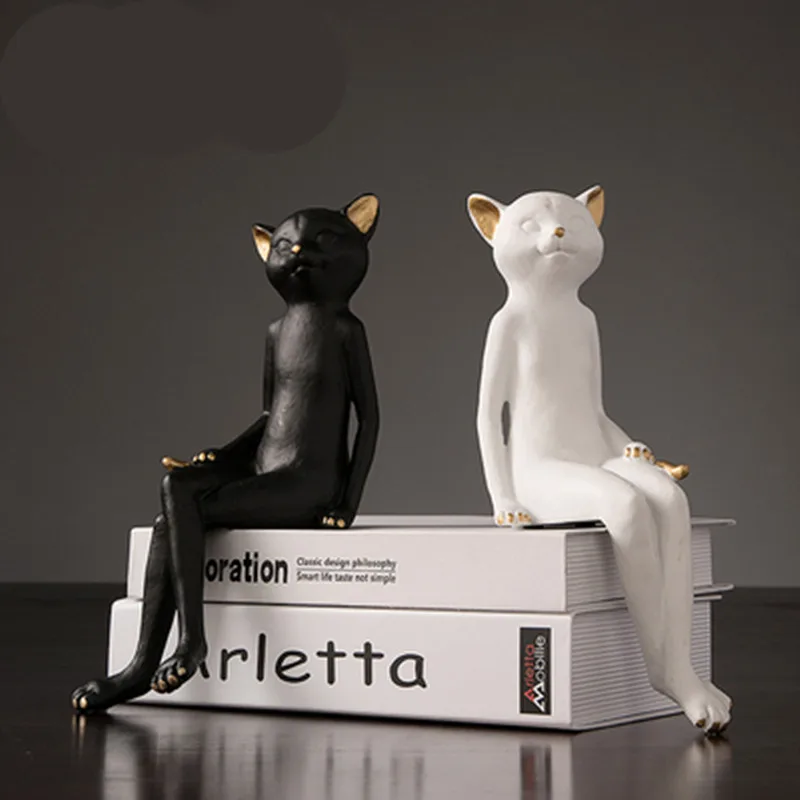 BEST 2PCS/SET Creative Personality Fun Cat Living Room Wine Cabinet TV Cabinet Sample Room Desktop Decor